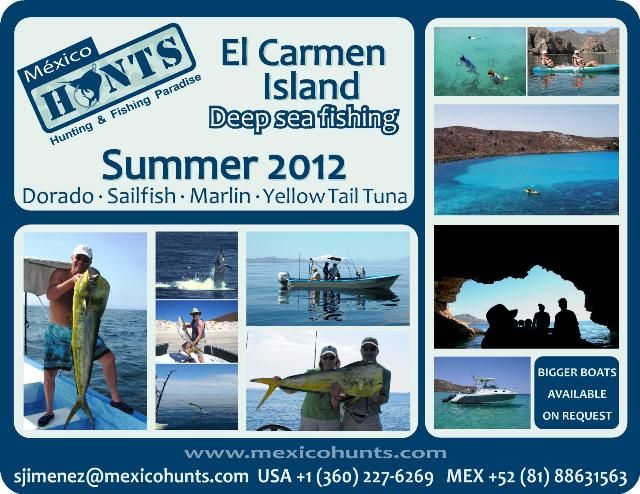 Special note: Enjoy the beauty of this secluded private island just for you and friends or family while you fish for dorado, marlin, sea-bass, and sail-fish. Also enjoy kayaking, snorkeling, and hiking. With more than 20 years of experience as hunting and sport fishing outfitters, Mexico Hunts offer one of the best services in Mexico, with the highest quality and formality. We count with a great diversity of fauna and quality trophies, excellent accommodations, and service guaranteeing an unforgettable experience. The finest fishing to be found anywhere!