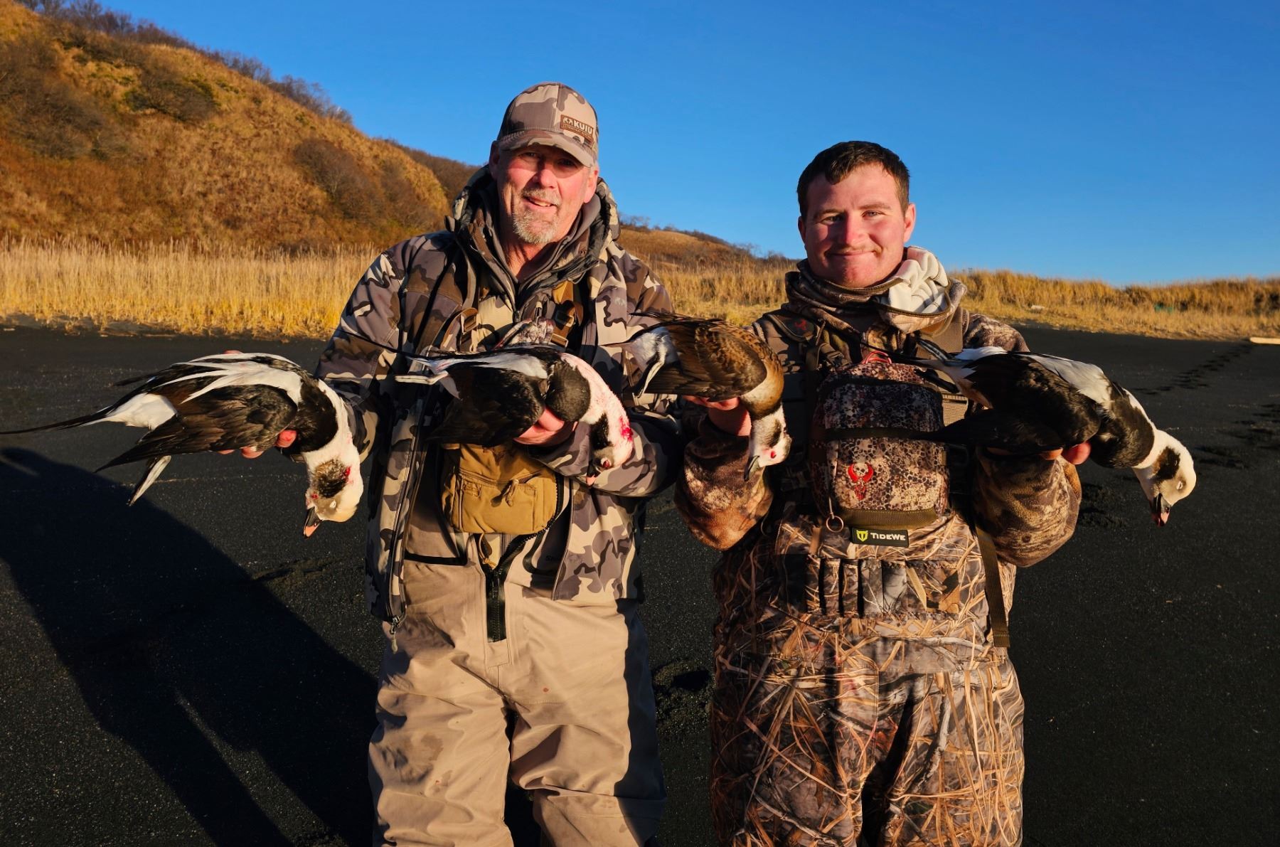 USCG licensed transporter, registered Alaska waterfowl guide, warm and comfortable ocean front wilderness house accommodations, hearty home-style cooked and box lunch meals, in-field transportation, duck decoy spread, VHF/marine radio, and freezer accommodations for trophy ducks and game meat.