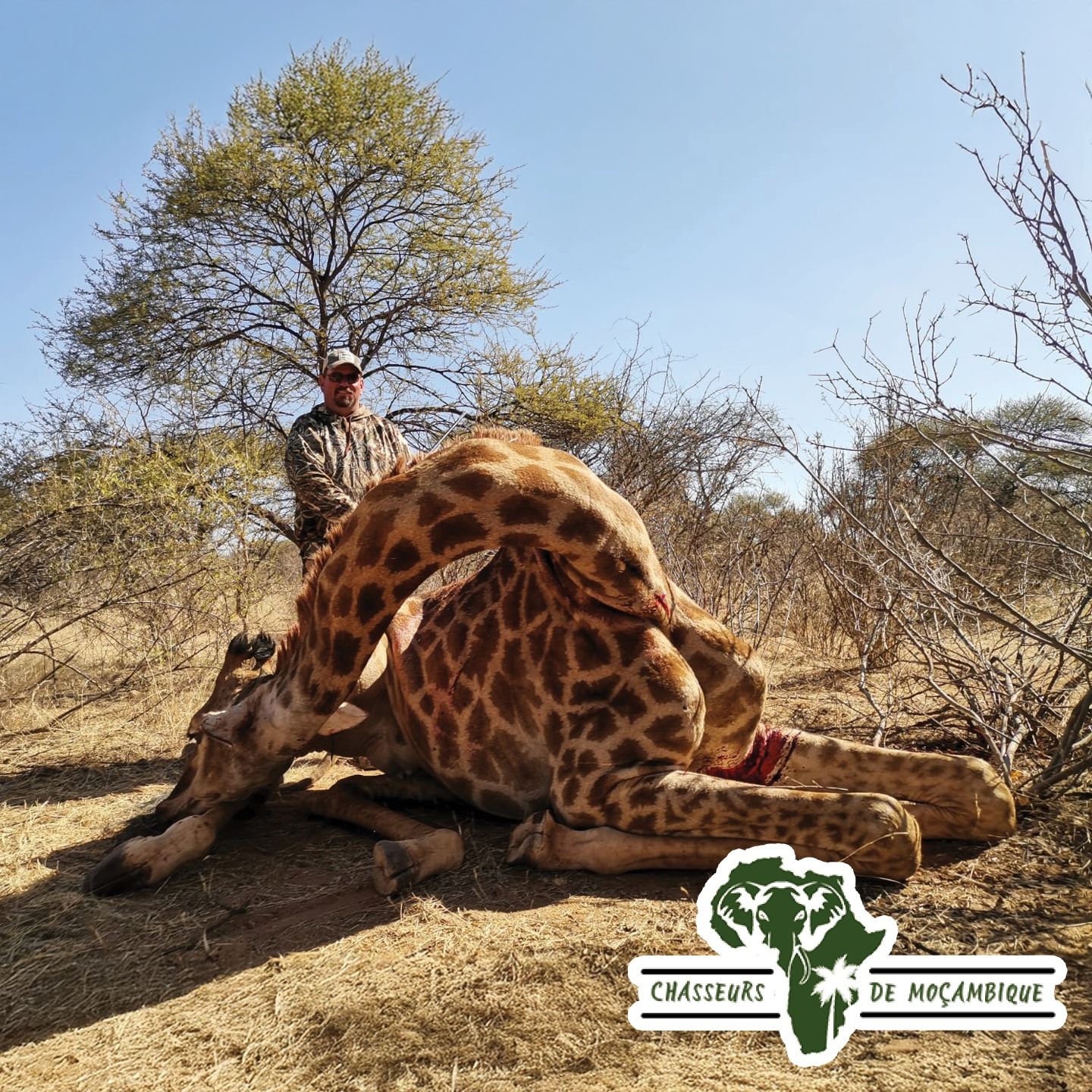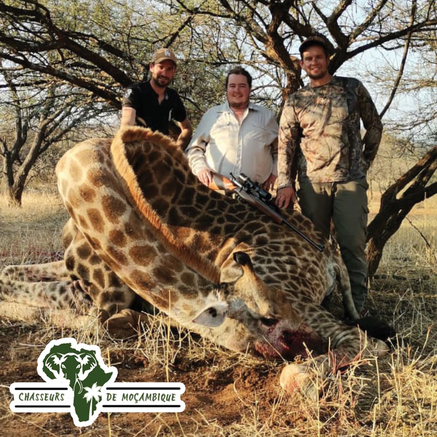 DONATION: This is a 5-day hunt for a giraffe (bull or cow) and 30% off trophy fee for bull Buffalo for hunter in Mozambique with Chasseurs de Mocambique.