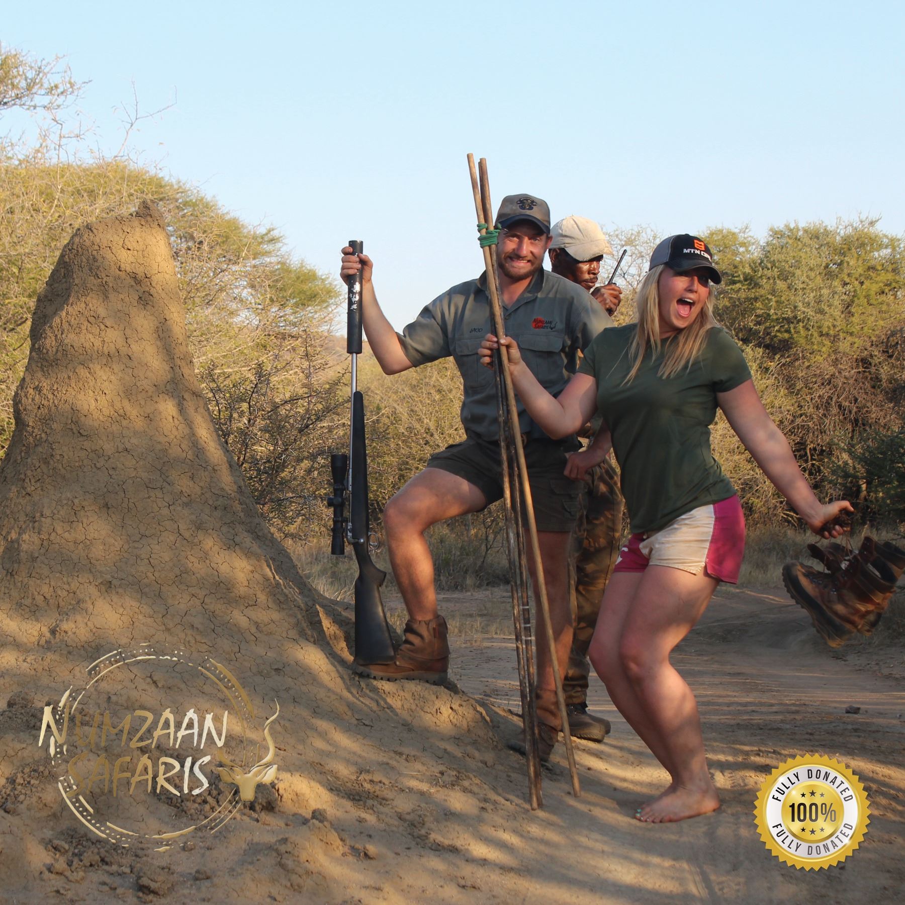 No automatic or semi-automatics permitted. Rifles and ammunition are available from Numzaan Safaris at minimal cost.