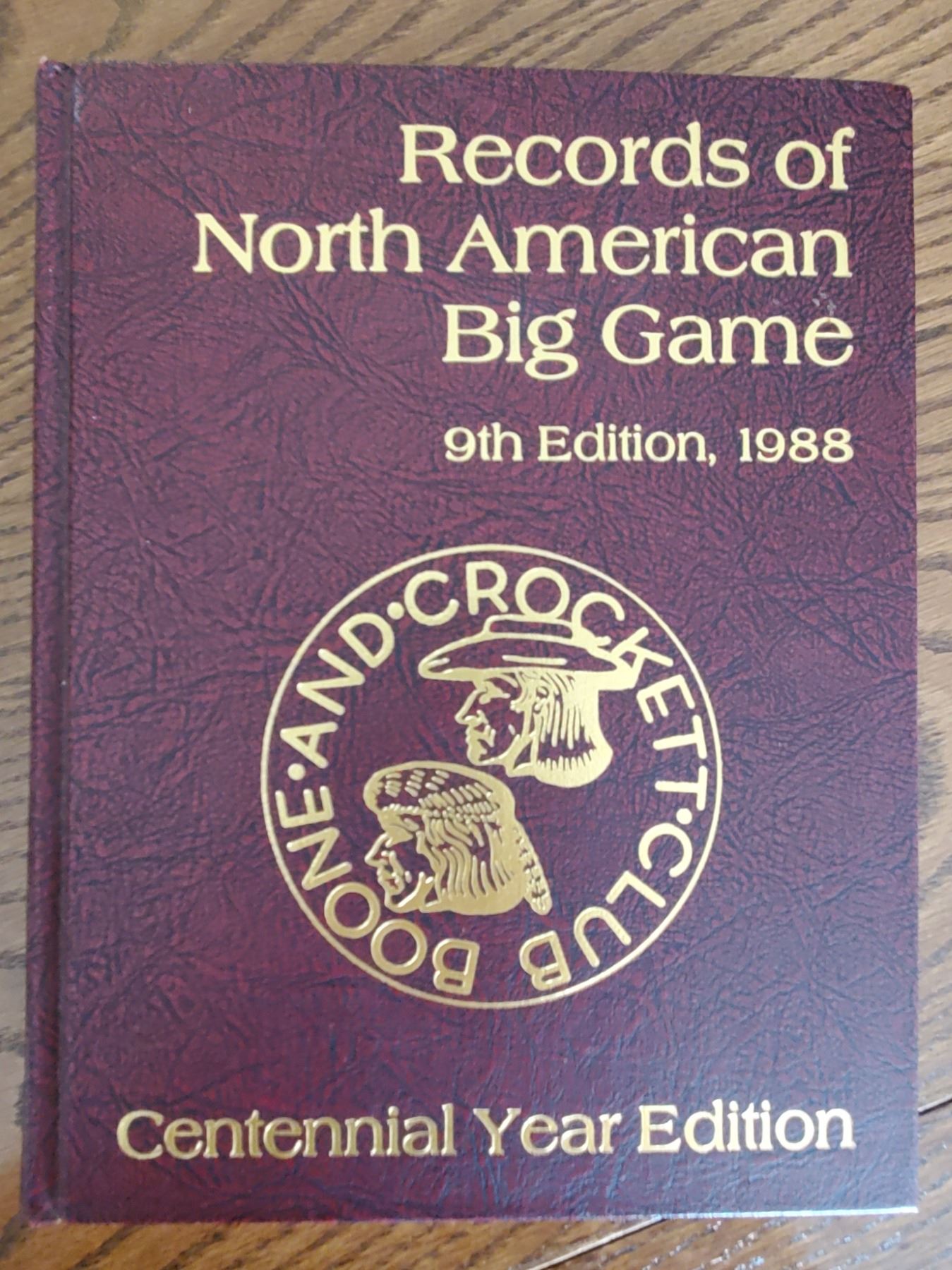 Description: A collection of 8 hard cover books(some slightly worn) from the collection of Bill and Ingrid Moynihan. This set's titles include: "Record Book of Trophy Animals SCI, Sixth edition, Volume 2", (#50 of 1000) signed by C.J. McElroy, "Records of North American Big Game, 9th Edition, 1988" centennial year edition by Boone and Crockett Club, "Trophy Deer of Alberta, 1982" leatherbound, signed by Russell Thornberry(#10 of 20), "North American Big Game, 7th Edition, 1977" by Boone and Crockett club, "Records of North American Big Game, 8th Edition, 1981" by Boone and Crockett club, "Records of North American Big Game, 1971" by Boone and Crockett club, "Elk of North America, Ecology and Management, 1982" by Jack Ward Thomas & Dale E. Towell, "North American Mammals-Furbearing Animals of the United States and Canada, 1967" by Roger A, Caras.