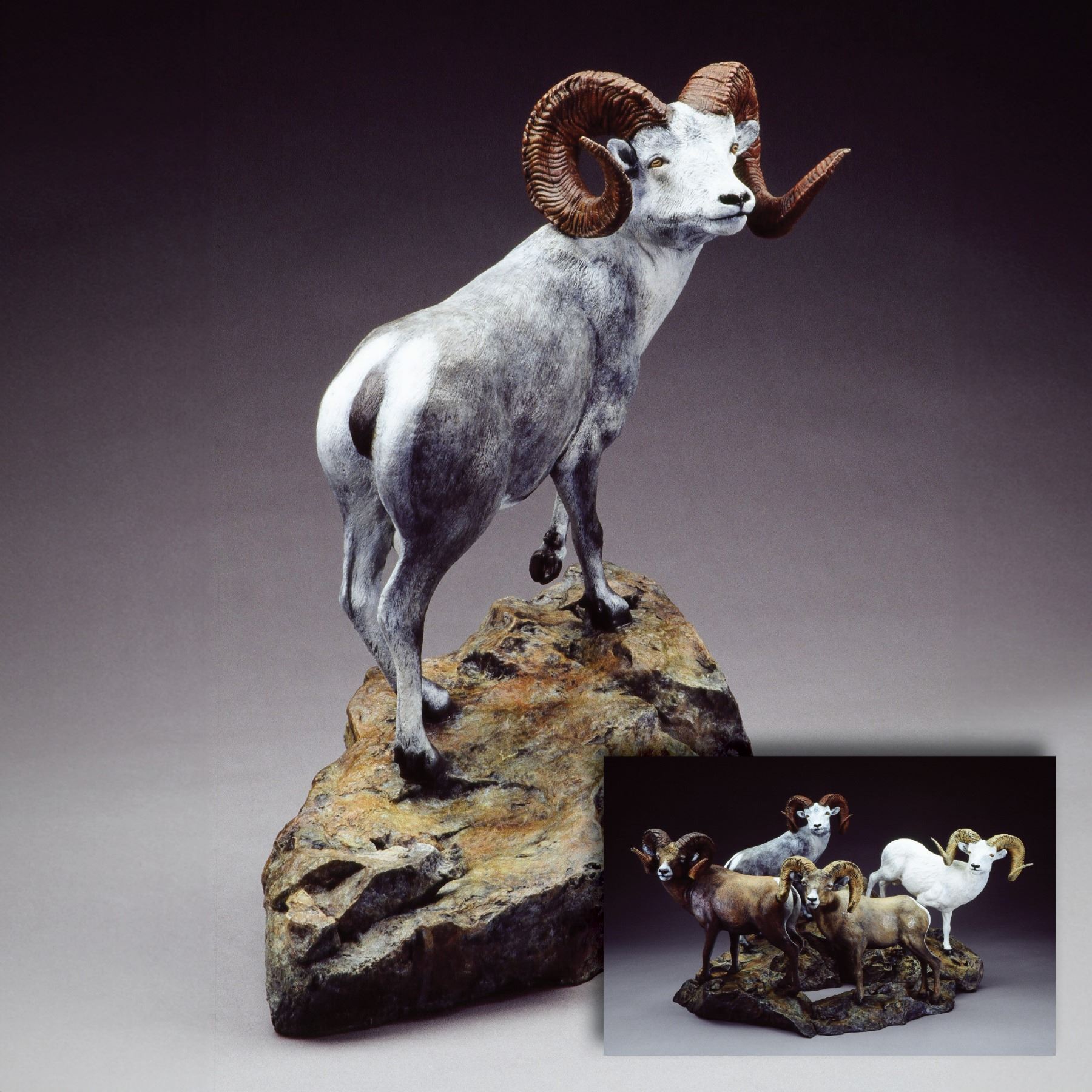 DONATION: For 2024 Karl will be donating the Stone’s sheep and over the next three years he will donate each of the other North American wild sheep...bighorn, desert, and Dall’s. Each bronze stands on interlocking rocks so don’t miss out on bidding each year to get ALL 4!! A League of Extraordinary Gentlemen. All with the same edition number, Karl, a self – taught artist, has been creating art in the form of bronze sculpture for over 30 years. He enjoys sharing the great outdoors that he calls home, through his talents. When you look at a Karl Lansing piece of art and feel life in the eyes, or hear the bugle of the elk, or smell the earth around you, then Karl feels his work is done. Karl is an avid outdoorsman and sports enthusiast, as well as a family man. Sculpting has become a natural extension for him to portray the impact that wilderness and wildlife have in his life. He thoroughly enjoys the challenging and ever-changing career that he has chosen.