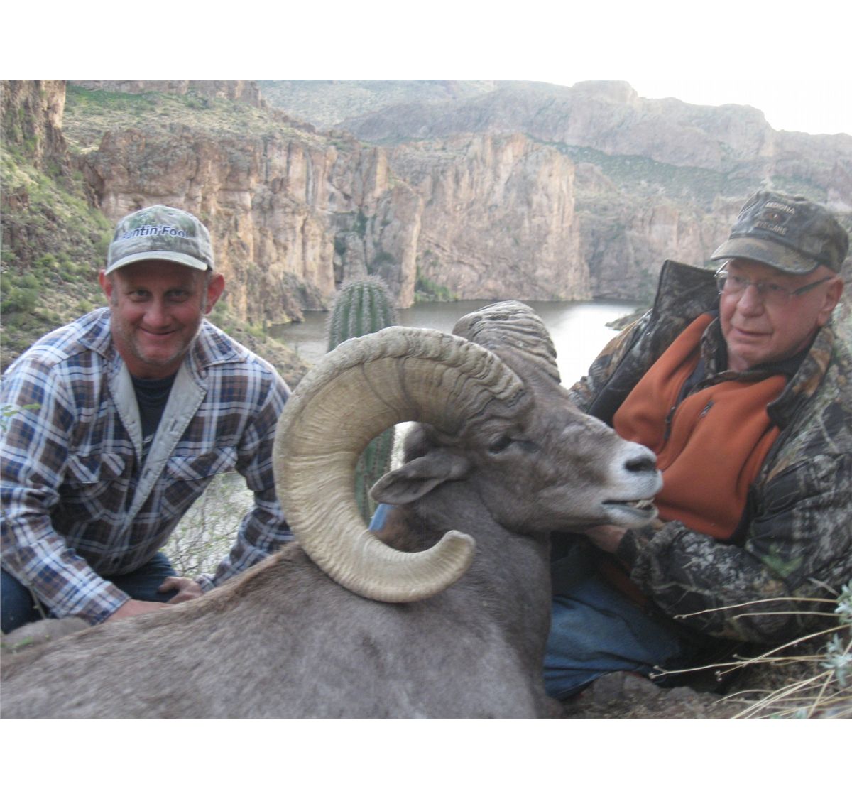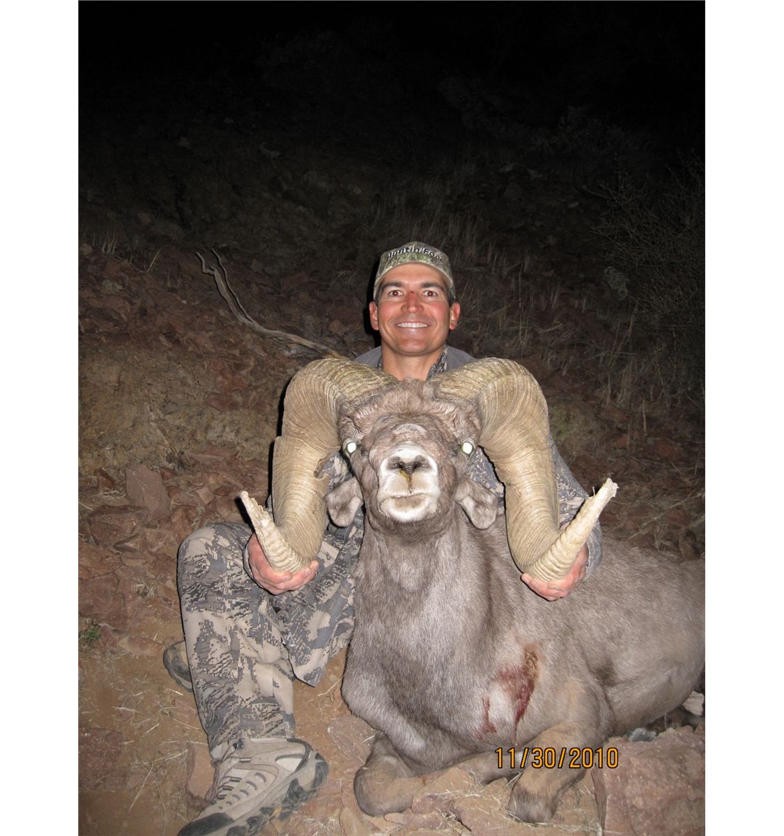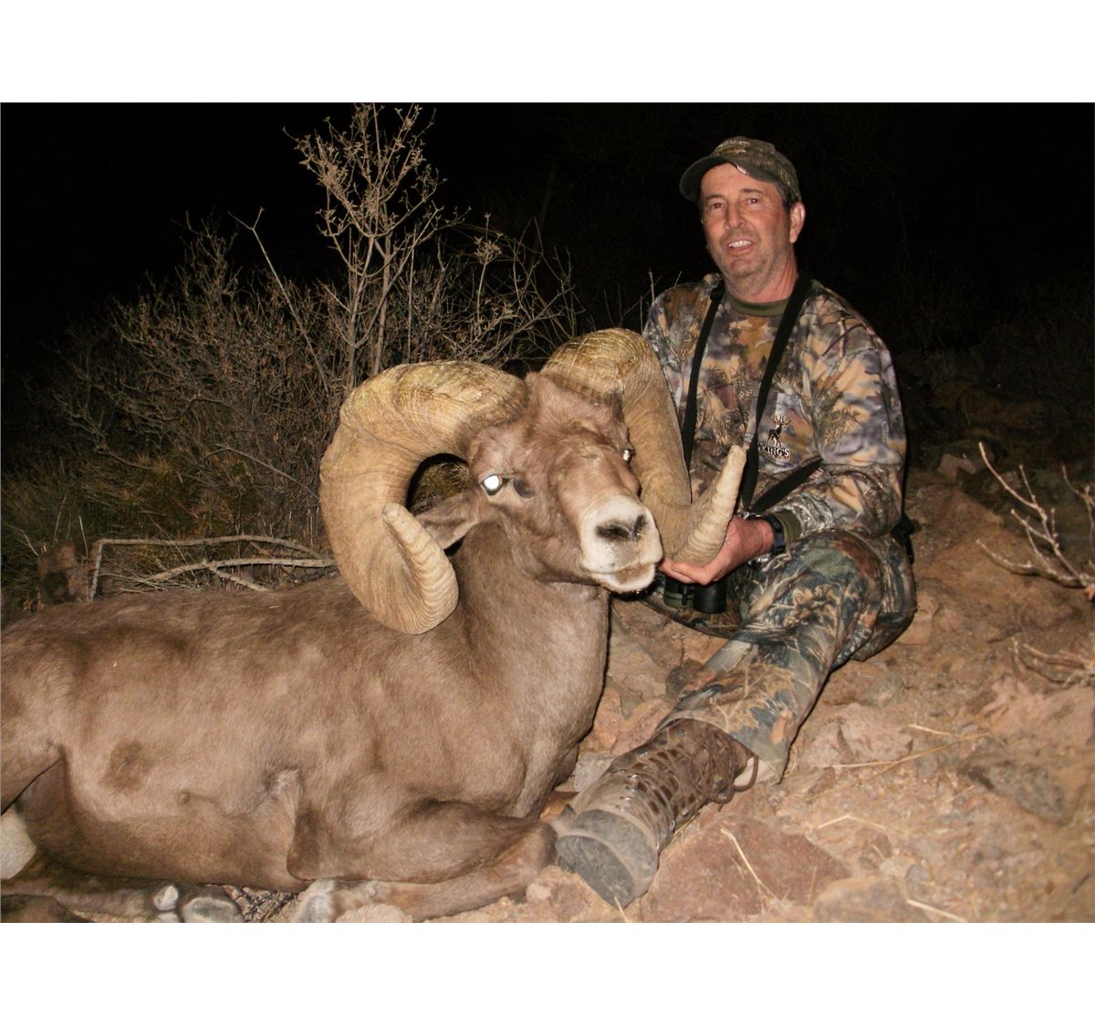 Arizona remains the premier state for Mexicana desert sheep and quality rams. Over the past decade Arizona has continued to produce an astonishing number of outstanding trophies. On average more than a dozen make the B&C book every year; at least one or more Score:s better than 180”. The previous 2011 season was another typically great year for Mexicana sheep hunters in Arizona with 17 rams scoring more than 170” and almost 40% of the overall harvest potentially making the book. Two of these majestic rams Score:d well over 180”, and one almost touched the magical 190” mark! Predictions for the 2012 and 2013 seasons are every bit as bright and there is no finer opportunity than Arizona for taking an exceptional Mexicana desert sheep. Last year, Mike Carpinito, the 2011 Arizona Auction Tag Buyer, harvested a tremendous ram in October 2011 which green Score:d 188-7/8”. The 2012 Arizona auction tag buyer, Gus Arvelo harvested another superb ram in August 2012 with and official B&C Score: of 185-1/8”.