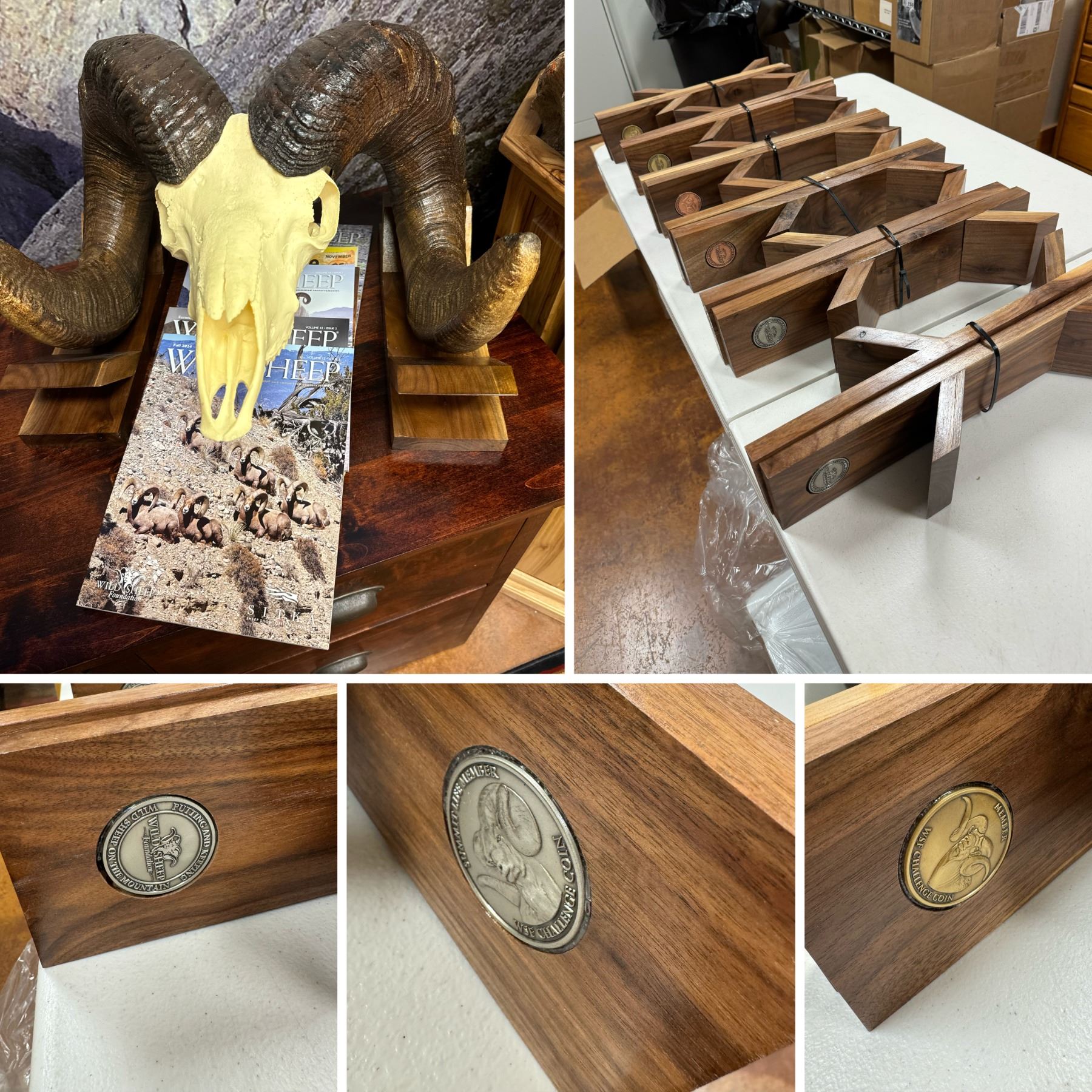 CUSTOM HORN CRADLE WITH WSF SUMMIT LIFE MEMBER CHALLENGE COIN