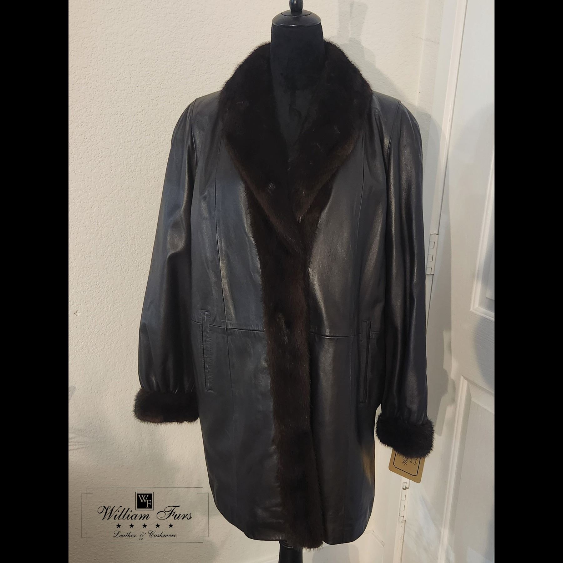 DARK BROWN LAMBSKIN LEATHER STROLLER WITH NATURAL MINK TRIM AND SHEARED MINK LINER