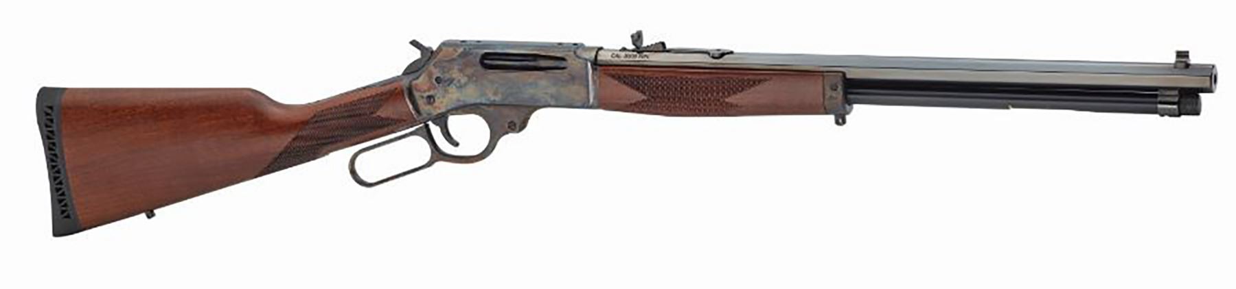 DONATION: Henry color hardened 30/30 with lever action .30-30, length 39”, weight 8.54 lbs, and capacity 5 rounds. Color case hardened steel receiver, fully adjustable rear sight and brass bead front sight. The Henry is drilled and tapped for a scope with an American Walnut stock and black ventilated rubber recoil pad.