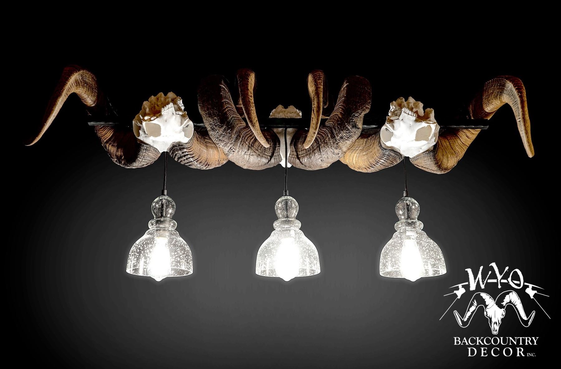 DONATION: This Intertwined Chandelier has (3)160 class Dall's Sheep on itwith 3 plain glass pendants. Wyo Backcountry Décor is an original, family-owned