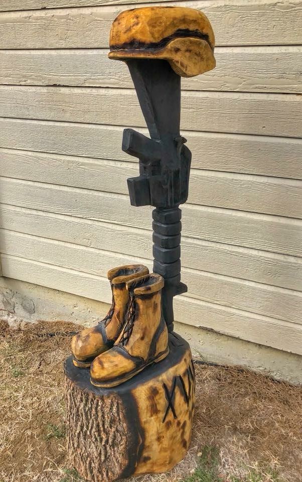 DONATION: We all deal with the loss and honor of our Fallen in different ways. Anthony Marquez dealt with his by using his creative and artistic natural gift. After returning home from a tough deployment, Marquez was one of the first to seek out the wounded and ask how they were doing and after he got out he followed that up with visiting the families of some of the 17 fallen in his unit. He followed that up by learning how to do carvings with a chainsaw. He decided to turn it into a company and called it XVII Carvings, in honor of the 17 warriors that sacrificed their lives for ours. Anthony created this amazing battlefield crosses and his mission was to deliver one to each of the families of his fallen brothers. In honor of the Wounded Warrior Outdoors, Anthony has generously donated this “Never Forget” Battle Crosses to be sold during the 2019 WSF “Sheep Show” to continue to give back and to honor the Fallen.