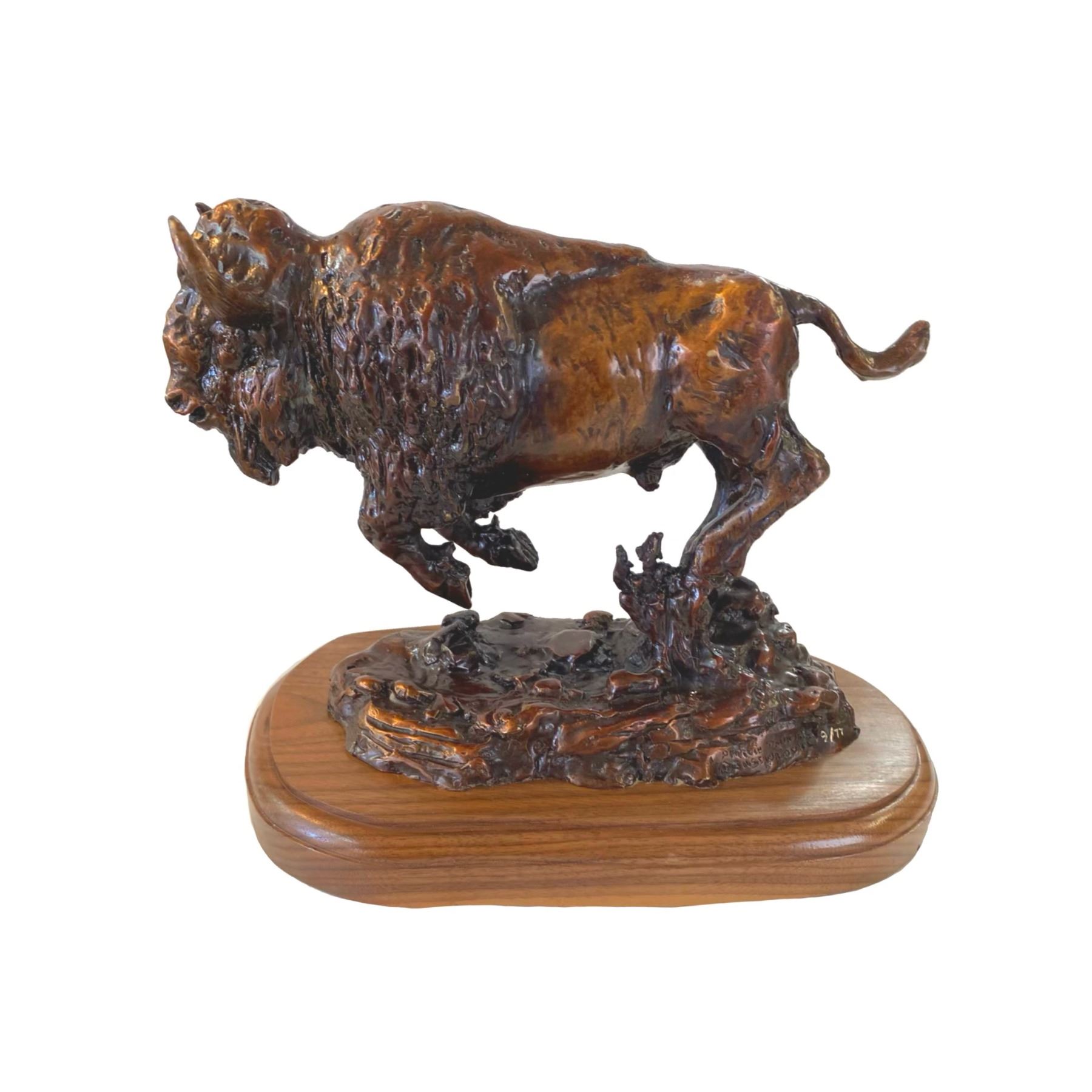 DONATION: The American Buffalo is one of the great symbols of America. Original lost wax casting on American black walnut base. This is Artist Proof 7/77 and is 14”L x 9”H x 9”W.