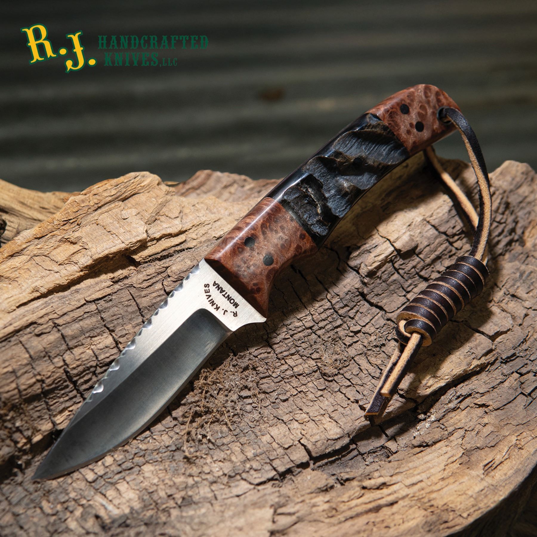 Handle is a combination of Stabilized Amboyna burl and Impala horn.
