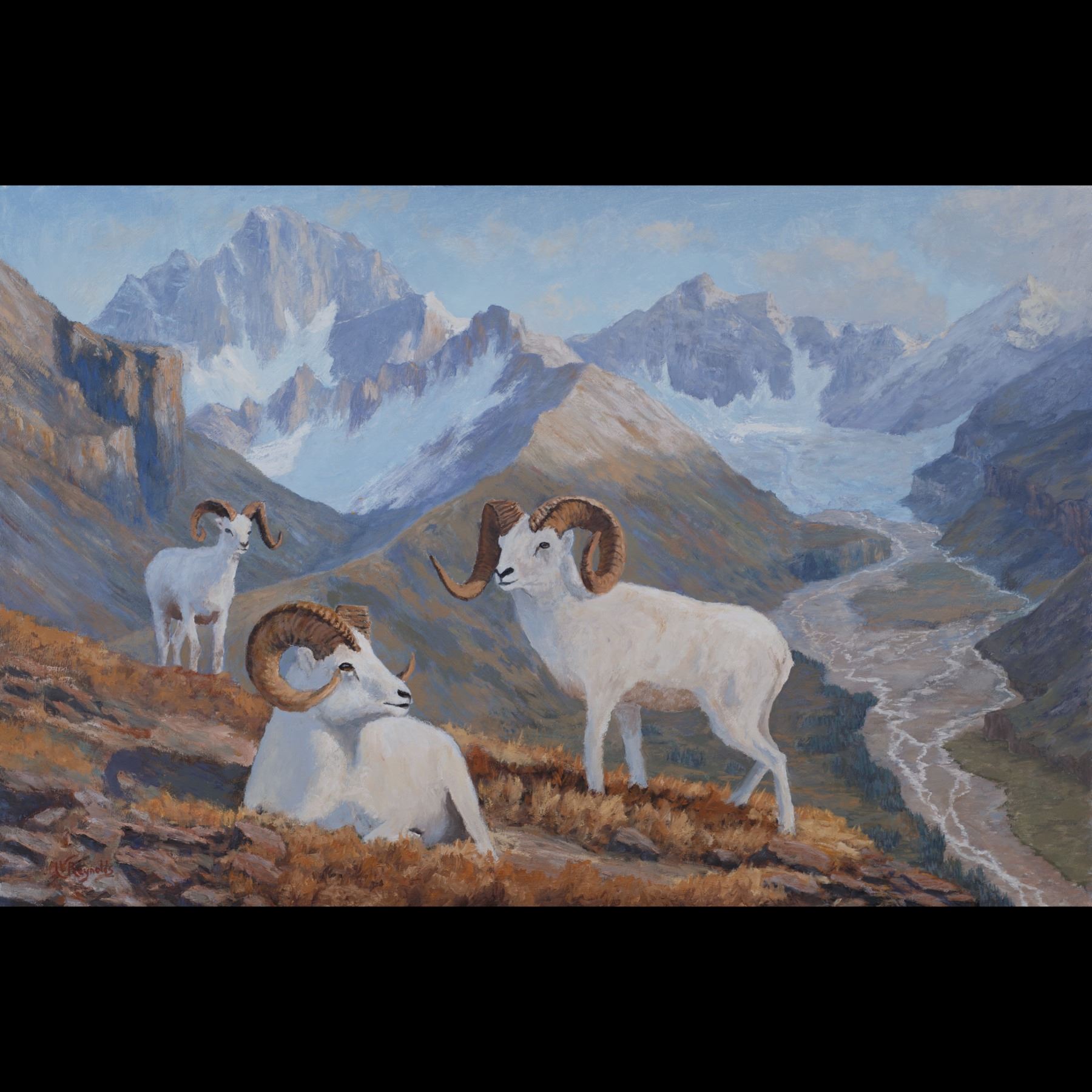 DONATION: “The Gathering on Lookout Ridge” 24”x36” Dall’s original oil painting on board and framed. Mark is a self-taught artist. As an avid outdoorsman he has traveled hunting and fishing throughout the west and Alaska. At the age of 24, Mark was dropped off in the Alaska Wilderness where he lived for a year. Although Mark has been painting in oils for many years and selling what he has painted, he never thought it important to enter contests or shows. “It’s important to me that I take you on a journey through my art.”