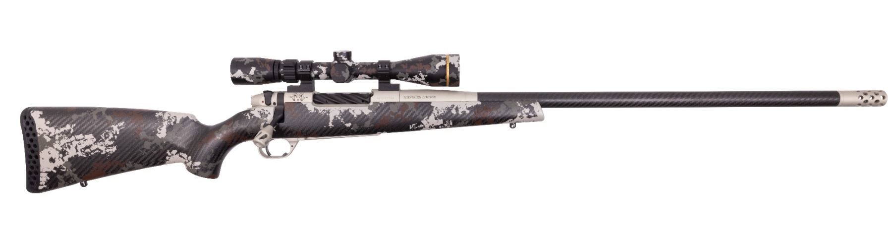The rifle base unit is the exceptional Backcountry 2.0 Ti Carbon - the most accurate Mark V Weatherby ever! The Thinhorn Edition Package includes a Leupold VX-5HD scope with Windplex Reticle in Talley rings packaged in a Boyt hard case. The rifle features the WSF logo on the floor plate and