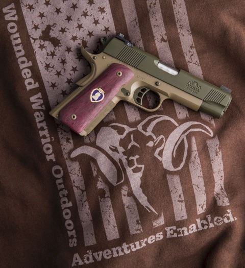 Donation: WWO Special Purple Heart Edition 1911. All-American made based upon Republic Forge’s Valiant model in .45 ACP with a 4.25” barrel. Grips are crafted in Purple Heart Wood which is inlaid with a miniature Purple Heart medal as well as the WWO medallion. Also included is a special edition WWO Presentation Buckle by Montana Silversmiths. These buckles cannot be purchased and are awarded to “buckle winning” Wounded Warrior’s on WWO Adventures Enabled trips as well as individuals that go above and beyond in support of our deserving warriors.
