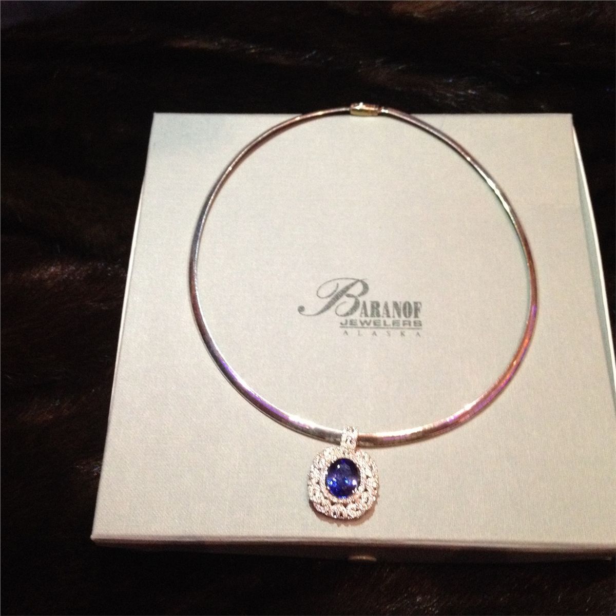 Donation: Natural Blue Violet Tanzanite and Diamond Pendent. Tanzanite is 7.36 Carat set in 14 Karat white gold surrounded by 1.57 carats of round brilliant cut diamonds. Diamonds are G-H in color and Vs2 clarity.