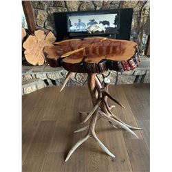 ANTLER HIGH TOP BAR TABLE W/TURQUOISE INLAY AND WSF LOGO(100% FULLY DONATED)Larry Jacobs & OR FNAW... Show more..