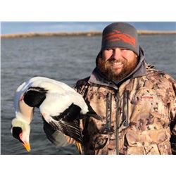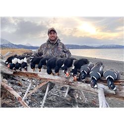 AMENITIES INCLUDED: Hunt includes: professional USCG licensed transporter, experienced Migratory Bird Hunting Guide, wilderness cabin accommodations (warm comfortable), hearty homestyle cooked meals and beverages, in-field transportation (Orca and Kalamath boats), duck decoy lines, layout boats, VHF/marine radio, bird prep/cleaning, and airport pick-up and drop-off.