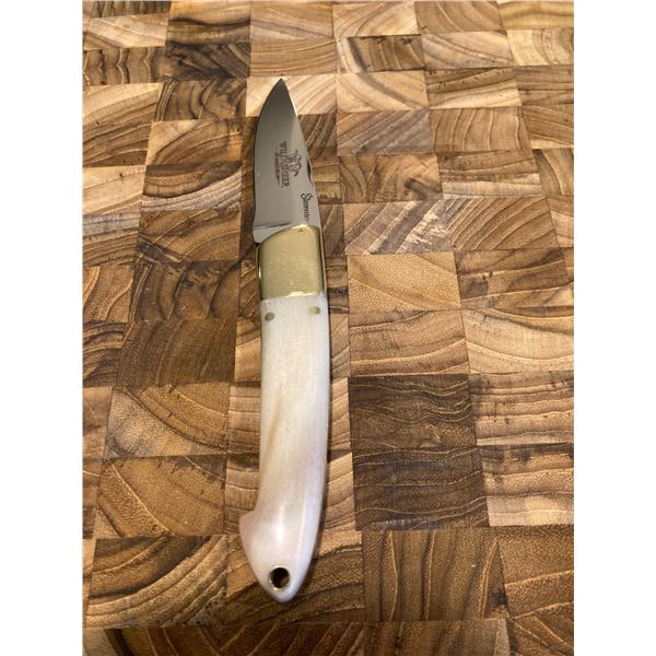 STEVENSON KNIVES CUSTOM RWL 34 BLADE WITH SHEEP HORN HANDLE Donor: Don Stevenson Description: (10... Show more..