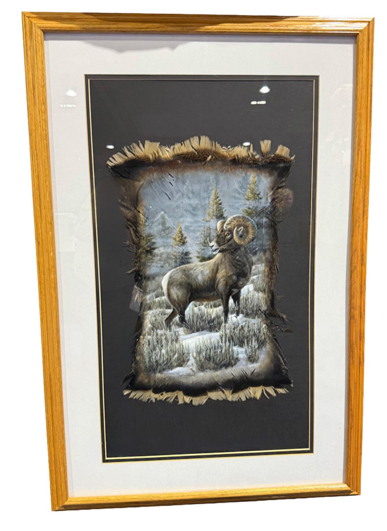 Acrylic Wild Sheep Painting on Feather